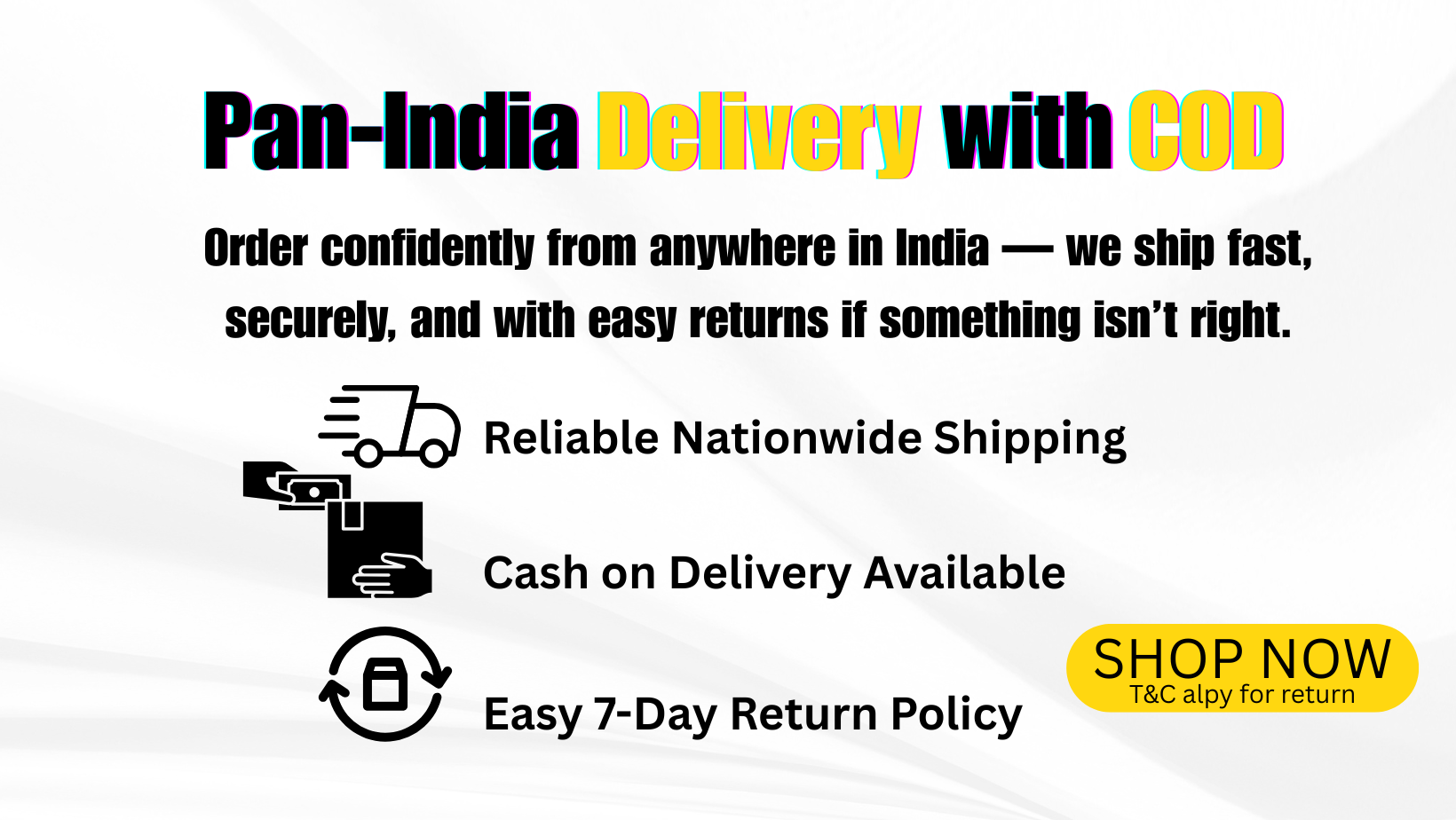 Orders are dispatched within 24 hours. Average delivery time: 3–6 days across India. Cash on Delivery is available for most pin codes.